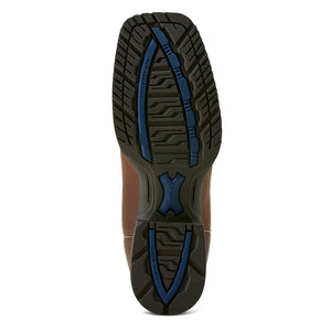 Experience the perfect blend of Western style and modern comfort with the Ariat Womens Hybrid Ranchwork Boot. Engineered with ATS® technology, your foot adapts effortlessly to uneven terrain while maintaining stability throughout the day. Shock Shield® technology absorbs heel impact and reduces fatigue, while the Energy Max™ anti-fatigue insole delivers exceptional support that's removable for easy maintenance. The exclusive Duratread™ sole balances durability with flexibility for boots built to last. Reinforced with a distinctive six-row stitch pattern, these peanut and worn denim boots combine rugged reliability with all.