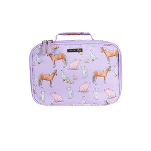 Featuring a unique hand-drawn multicolor design, this lunch bag includes a convenient carry handle, secure zip closure, an internal pocket for extra storage, and a stylish metal logo badge.