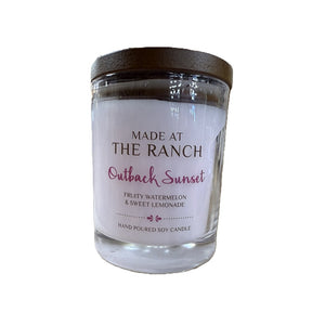 Capture the vibrant glow of the horizon with the Made At The Ranch "Outback Sunset" scent. Featuring refreshing top notes of watermelon, lemon, and casaba melon, this scent offers a lively and uplifting fragrance that brightens any room. Perfect for creating an energizing and inviting atmosphere, Outback Sunset brings the freshness of the Australian outback into your home with every burn.