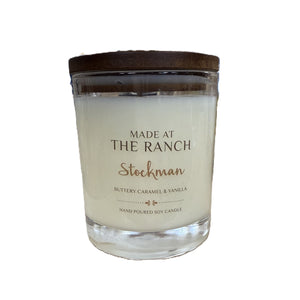Indulge in the rich warmth of Made At The Ranch "Stockman" scent, featuring decadent caramel and creamy vanilla notes. This luscious blend creates a cozy and inviting atmosphere, perfect for adding a touch of sweetness and comfort to your home. Let Stockman fill your space with a smooth, irresistible scent that soothes and delights with every flicker.