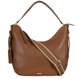 Featuring a top zip closure and an adjustable, removable webbing shoulder strap, this Thomas Cook Nadia bag in tan offers versatility and style. Inside, you'll find zip and slip pockets for easy organization, complemented by side zip pockets on the exterior. Finished with a logo metal badge and fully lined in genuine leather, it measures a convenient 32cm wide by 30cm high and 8cm deep, perfect for everyday use.