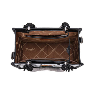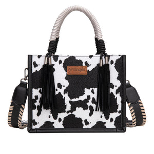 Wrangler Crossbody Bag | Cow Print Tassel | Black