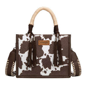 Wrangler Crossbody Bag | Cow Print Tassel | Chocolate