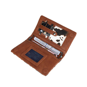 Elevate your everyday carry with this striking Wrangler Wallet Bag, featuring a bold brown cow print design that makes a statement. The compact crossbody style keeps your essentials within reach while leaving your hands free, perfect for shopping, travel, or casual outings. Crafted with quality construction, this versatile bag pairs effortlessly with any wardrobe. Whether you're after practical functionality or eye-catching style, this cow print crossbody delivers both in one chic package.