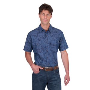 This Pure Western Travis shirt combines classic western style with durable design. Featuring snap closures and western chest pockets, including a handy pen holder, it offers practical convenience. The western front and back yokes, enhanced with triple-needle stitching and contrast trim on the collar stand, provide rugged detail while ensuring lasting quality. Perfect for those who value both style and functionality in a men's chambray shirt.