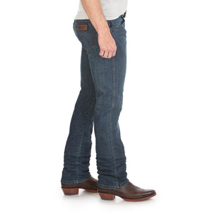 These Wrangler Men's Retro Portland jeans feature a 34-inch leg that sits lower on the waist for a comfortable, modern fit. Designed with a slim seat and thigh, they offer a tailored look without sacrificing mobility. The straight leg silhouette fits perfectly over boots, making them ideal for both casual and rugged styles.