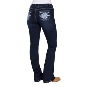 Experience comfort and style with the Pure Western Women's Lyn Relaxed Rider Jeans featuring a 36” leg. Designed with extra room through the thigh and knee, these jeans offer stretch for ease of movement. The mid-rise fit includes a slightly higher back rise for added coverage, while details like a logo shank button, metal rivets, and woven logo label on the back yoke deliver lasting quality. Finished with contrast all-over topstitching, these jeans combine a relaxed fit with durable craftsmanship for everyday wear.