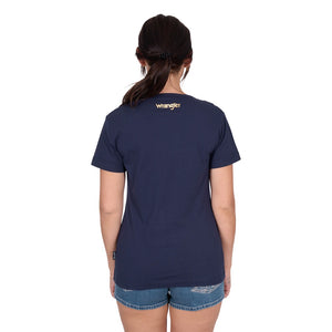 Experience effortless style with the Wrangler Womens T-Shirt in Navy. Featuring a classic v-neck silhouette and a comfortable self-fabric neck bind, this tee offers a flattering fit for everyday wear. The subtle Wrangler logo pip on the side seam adds a touch of authenticity, making it an essential wardrobe staple that pairs perfectly with any casual outfit.
