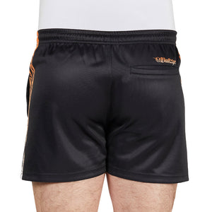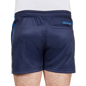 Sports short with elasticated waist, internal drawcord, back welt pocket, top quality stretch polyester, great for the footy field, camping grounds, or hanging with your mates